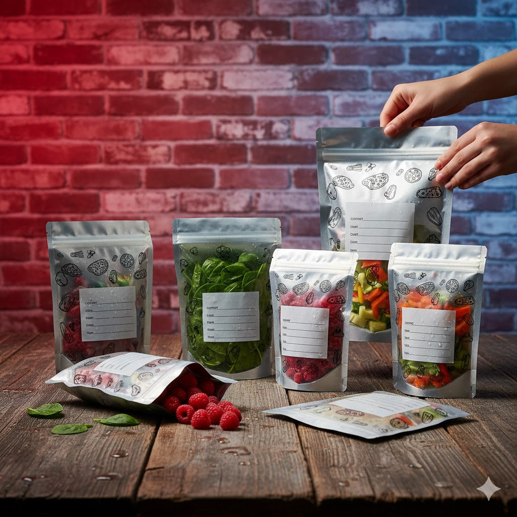 Aluminum foil bags designed for maximum food preservation and freshness.